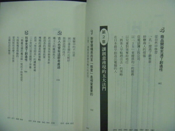 ![]() ![]() ![]() [ISBN-13碼] 9789578386686 [ISBN] 9578386680 [作者] 後藤國彥 [出版社] 日之昇 [出版日期] 2002-09-15 [內容簡介] (本項為出版商制式文字, 不論下文註明有無附件, 仍以本拍賣商品標題為準, 標題未註明有附件者一律均無) 運用智慧構思的方法,掌握創意湧現的五大法門,讓創意就這麼泉湧而出。構思的方法必須實際地使用它才可稱得上是活用。本書將以現實上我們身邊所利用到的構想及例子為中心,來做整體性的介紹。靈活運用「態度、知識、腦部活動、刺激、技法」是提高創造能力、構思能力的要點。本書將教導您,如何去運用更高明的方法,來達成上述各類要點。並不是囫圇吞棗地整合靈機一現的想法,只要使用技法就能讓我們的構思能力泉湧而出。在此介紹為了達成智慧構思最具代表性的技法,以及達成效果的實踐方法和具體實例,徹底地磨鍊您的構思能力。 ---------------------------------------------------------------------------------------------------- 低價特賣 書籍狀態請詳看圖示 *內容敘述為制式文字,僅為針對書籍內容參考用,關於有無光碟與附件請以標題為準。* *出版日期由於亦為制式內容有時會有出入,若日期與版別足以影響購買決定者請另行提問較為準確。* 由於電子信箱有漏信風險故敝店不予開放。倘有需詢問事項請於商品頁之「有關商品的發問」留下詢問內容, 敝店將儘速處理。(倘使用敝店首頁最下方的「向店長詢問」請務必說明是針對哪項商品管理編號發問喔) ■客服電話服務時間: